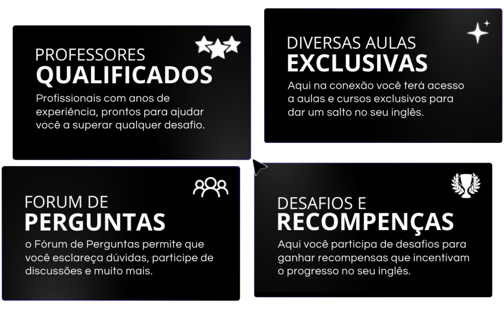 Aqui na Conexão Bilíngue você terá acesso a diversos benefícios como: